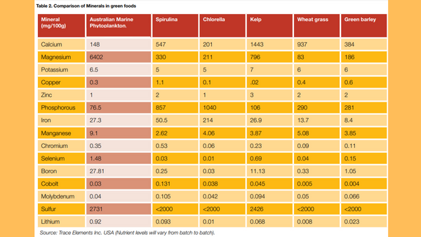 Phytoplankton contains the Omega-3 essential fatty acids DHA (docosahexaenoic acid) and EPA (eicosapentaenoic acid) and it contains nearly double the amount of omega-3 fats by weight as fish oil.